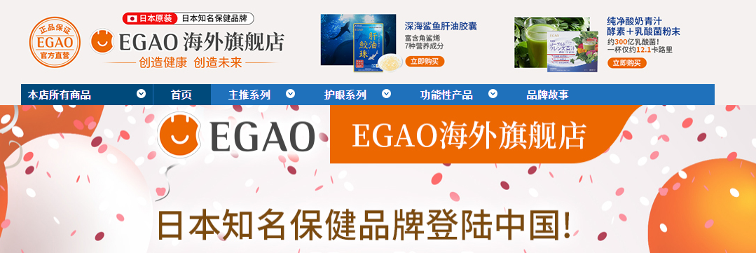 作为日本本土优质品牌,EGAO入驻天猫,毫无疑问让中国消费者也能够在国内购买高品质的健康营养保健品,而EGAO也意旨在通过先进的科研技术,严格的生产管控,为中国消费者改善身体健康状况,传递健康生活的理念,用更加优质的产品为消费者带来服务。