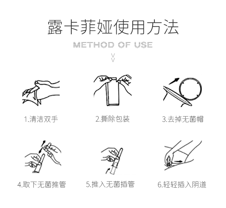 2、平躺,弯曲双膝,将推注器放入阴道3-5公分处,将本品推入阴道后缓缓撤出即可;(不可推入过深)