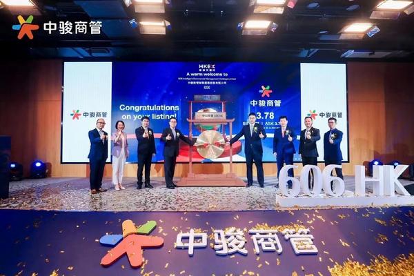 7月2日,中骏商管智慧服务控股有限公司(股份代号:606.HK)在港交所成功挂牌上市。