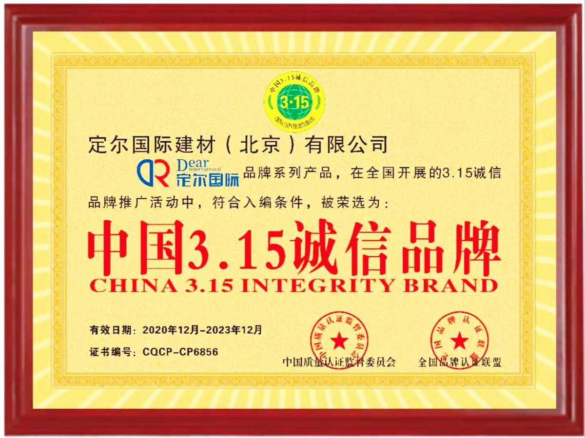 凭借强大的技术实力和优秀的服务水平,定尔国际板材先后荣获"中国家居行业优秀服务商""中国自主创新最具影响力品牌""中国3·15诚信品牌""中国板材行业十大品牌""中国绿色环保推广产品""国际知名品牌"等荣誉,并赢得了广大消费者的一致认可。