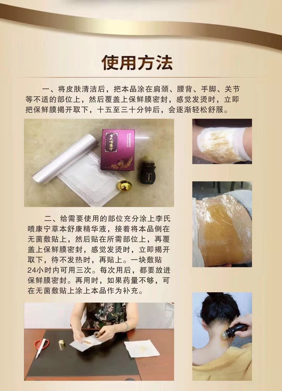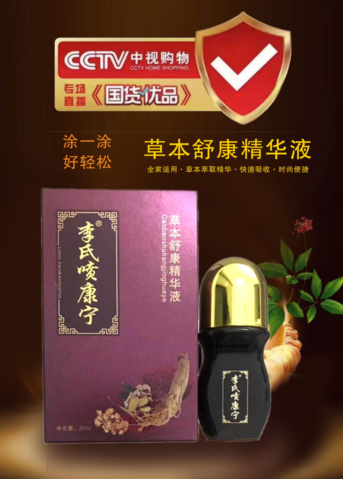 经过了层层筛选及严格审核,李氏喷康宁草本舒康精华液终于实至名归,入选CCTⅤ“国货优品”,对此,研发者李奕华老师感到非常荣幸!她高兴地说:“李氏喷康宁舒康精华液植根于中国大地,取人参、藏红花、川芎和生姜等草本中药之精华,结合现代科学技术的运用,使其更有利于人体肌肤的吸收。在此,感谢国家的好政策,感谢CCTV中视购物栏目组给了我这个好机会,让李氏喷康宁舒康精华液有更多机会服务于大众!"这几年,李奕华老师通过不断的实践、改进和完善,李氏喷康宁草本舒康精华液对改善国人亚健康,改善人体肩颈、腰背、膝盖、手腕等都位的酸痛肿痛,已经有了很好的效果,深受广大用户的好评。