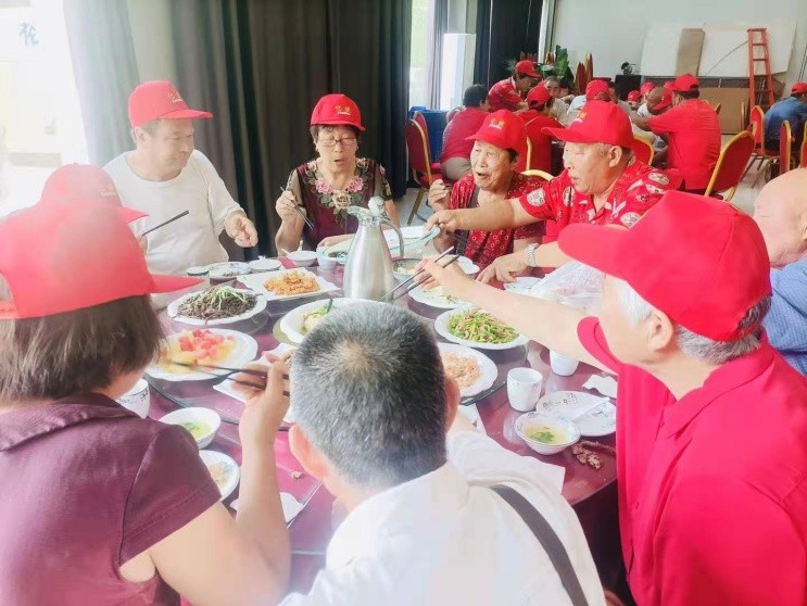 老人们参观生产基地后,李盼盼带领大家吃了一顿丰盛的、有特色的午餐,下午带老人们去郑州市看了皇帝千古情大型表演节目。