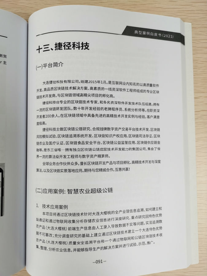 中国国际经济技术合作促进会通过本次活动,在全国范围内寻找优秀的区块链技术团队,捷径科技集团作为区块链行业的先行者,以智慧农业超级公链项目成功入选,同时大连捷径科技集团及另外19家成员及单位共同参与了本白皮书的汇编工作。