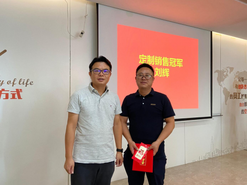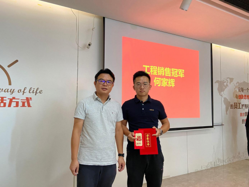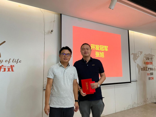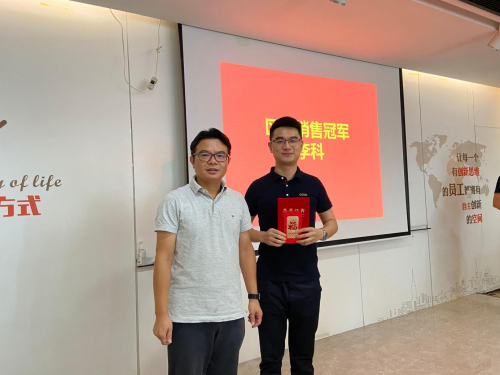 半年度先进个人奖在会议上逐一揭晓,金牌人登上舞台接受总经理曾小羚的嘉奖。