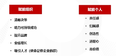 企业是盈利性组织,而且这个盈利是持续盈利、为社会创造更多价值。不管为谁创造价值,组织一定要创造价值,而不是消耗价值。使命赋能组织也好,赋能个人也好,它的结果都应该是创造更高的商业价值。图3列出了使命赋能组织和员工的实际价值。