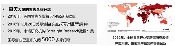 大家都说这是一个经常会被颠覆的时代,让我们聚焦于一个随时面临着被颠覆压力的行业——实体零售商超。这是一个几乎没有行业进入门槛、现在可能面临无数的亏损和巨额的破产、复杂的竞争环境、随处可见替代性产品和服务的行当。市场研究机构Coresight Research的数据显示:2019年,美国零售业已宣布关闭 5000 多家门店;2020年,全球零售行业受新冠肺炎疫情冲击很大,主要集中在实体零售业。