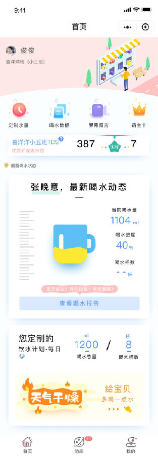 育贝帮智能饮水机服务平台,可随时身份切换家长,老师双模式,小朋友在园里动态全记录,集成整合幼儿园防疫检测,智能人脸识别,短视频片段记录生活,健康饮水,信息实时推送模块,数据采集上传分析等功能,为平台提供功能支持,帮幼儿园园区完善健康生态环境建设。育贝帮AI智能饮水机将秉承“诚信铸就品质,科技引领未来”的品牌理念深耕幼儿园市场,为幼儿园提供全面的饮水系统,为家长提供便捷的数据信息服务,为孩子们提供干净健康的直饮水,努力争取为幼儿园孩子们的健康饮水行业树立新的标杆,截至目前,育贝帮AI智能饮水机设备,以投放上百家知名幼儿园,并获得一致好评,今年公司计划投入千家幼儿园,通过智慧饮水,助力孩子成长,相信在不久的将来,必将走进万千园区,真正的达成家校互联,健康饮水,让每一位宝贝爱上喝水。