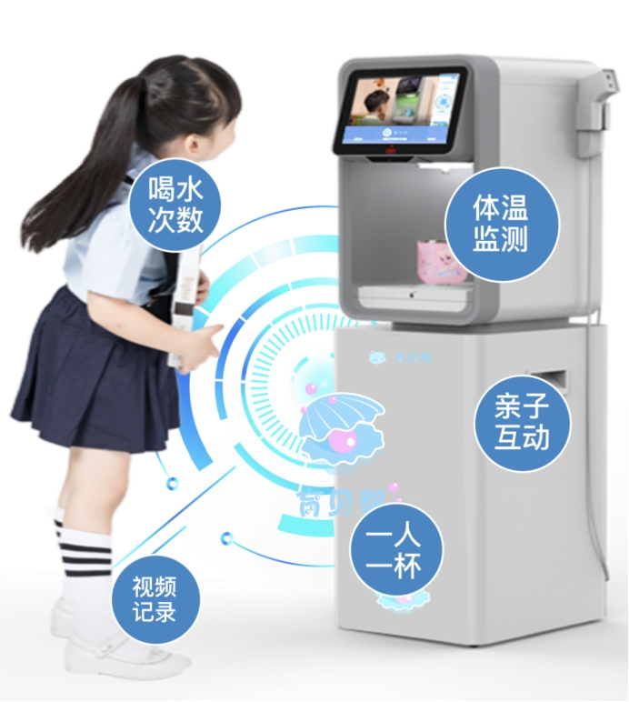 育贝帮AI智能饮水机,饮水健康,有效去除饮用水中的颗粒杂质、细菌、病毒、有机物、无机盐等有害物质,保证水质安全,同时人身的安全也要保证,闭路管线供水,水质监控,保证饮用水24小时卫生、纯净。另采用AI人脸识别和NFC水杯识别技术,防止小朋友拿错杯子饮水交叉感染手足口病等传染性疾病。科学的饮水,能培养孩子良好饮水习惯,自主的从饮水设备接水,养成每天按时按量喝水的好习惯。育贝帮AI智能饮水机,拥有育贝帮小程序,家校沟通便捷,家长可监控自己的孩子在幼儿园的每日饮水情况,饮水时的体温检测,节省家长和学校间的沟通信任成本。物联网技术实现家长和幼儿园实时查看小朋友在园的饮水状态、健康状态,小朋友与家长之间的交流互动,提高小朋友的喝水次数,小朋友在接水时可观看家长提前拍摄的小视频,增加亲子间的互动,家长和幼儿园的互动联系,同时更拉近了家长与幼儿园的距离。