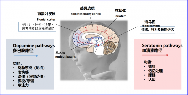 在孩子们长期使用后,学习的兴趣、主动性和能力也会有所提升,因为血清素和多巴胺与人们的学习认知过程有着密切的相关性。