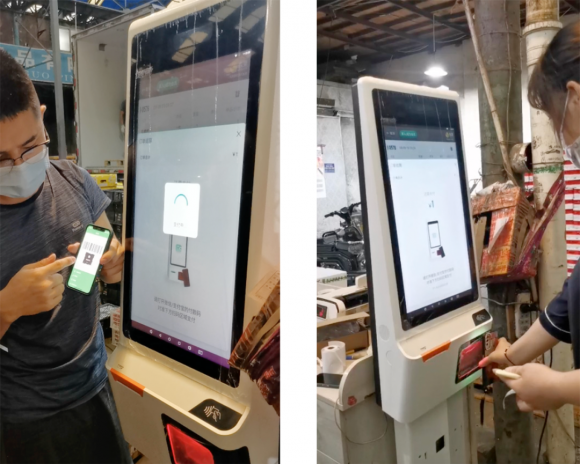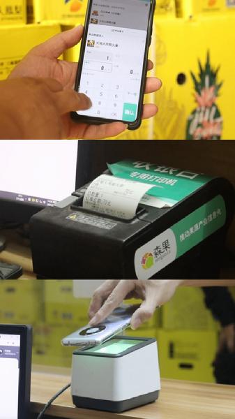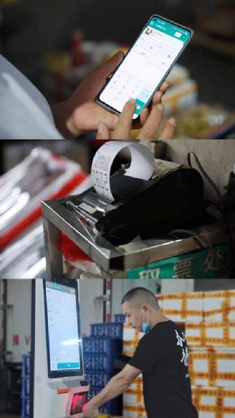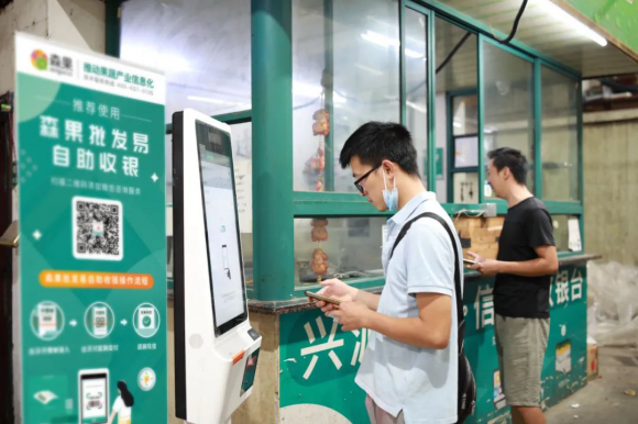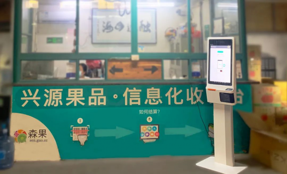兴源果行投入使用后,贺总也赞不绝口:“森果批发易越来越先进了!这个自助收银机安装了以后,客户自己扫码支付,效率提高了非常多!采购商见到机器都要说声好,这也确实让他们采购更简单更快捷了。”贺总还开玩笑补充道:“咱家收银员最近总担心自己快失业了。”