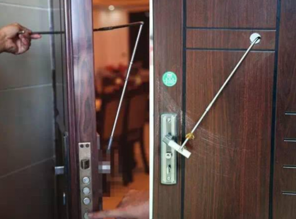 猫眼开锁是将特质开锁工具从猫眼里伸进去勾住门把手,然后顺利开锁,怎么样,是不是很简单?简单归简单,但不要轻易尝试,否则很有可能要被请去喝茶的。