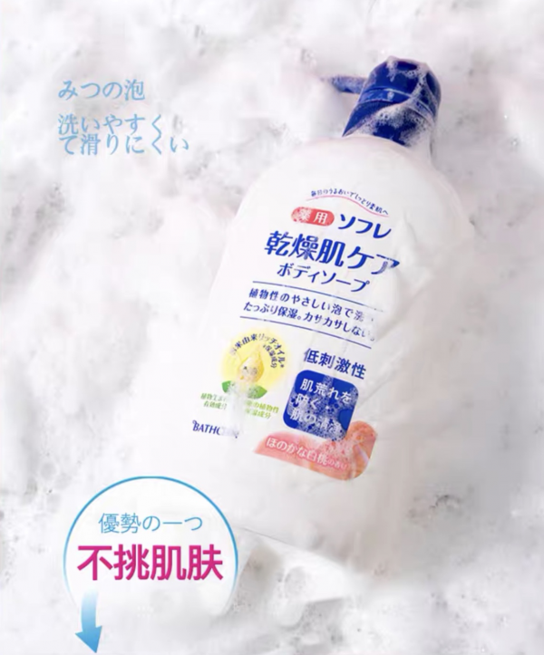面部的肌肤护理从清洁开始,身体肌肤的护理当然也要从洗澡开始。换季需要对身体肌肤加强保湿及水分、营养的补给。许多人在沐浴后感到肌肤干燥,通常后续会使用润肤乳来给肌肤做保湿锁水。其实在洗澡时就要对肌肤做好充分的保护。日本巴斯克林旗下的舒芙蕾白桃沐浴露就是干燥、敏感肌肤宝宝们的洗护福音。
