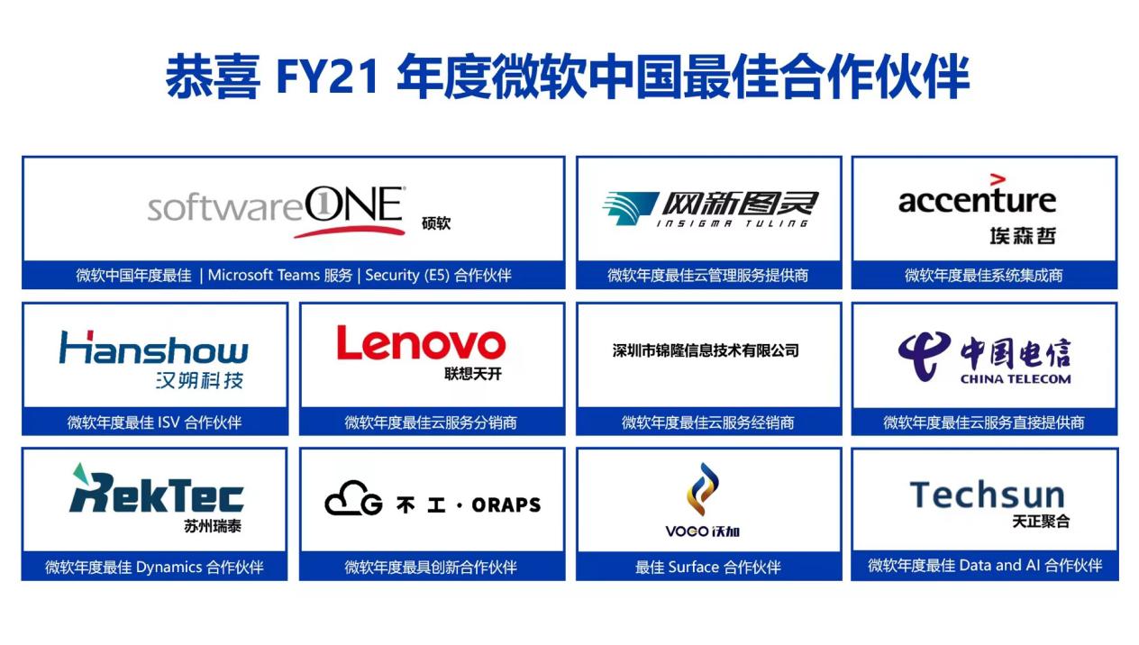 2021年8月19-20日,MicrosoftInspire China 2021微软中国·启迪合作伙伴大会召开。Techsun天正聚合荣登榜单,被评为FY21年度微软中国最佳Dataand AI合作伙伴。