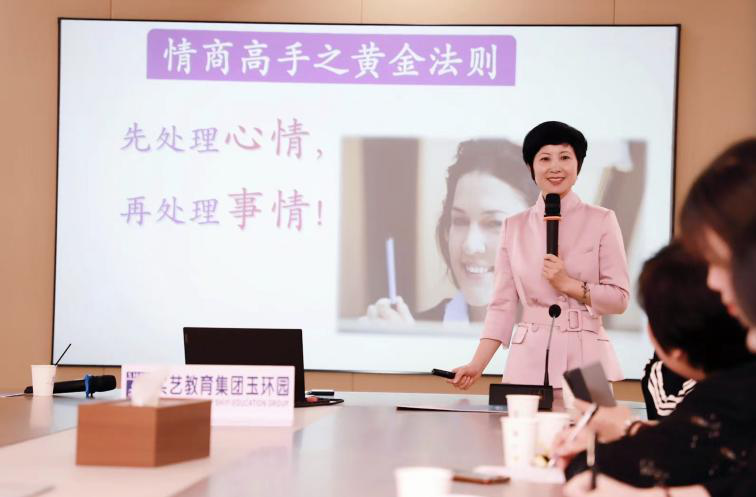 “我现在更多做的是宣讲,对园长的培养,教师的培养,更多的是对家长的宣讲,教父母如何教育孩子,我三分之一时间都在给家长讲课。很多时候靠幼儿园是不够的,重要的是家长的共育。孩子不是教出来,一定是潜移默化影响出来的,言行举止和孩子的互动方式都有一定的标准。”