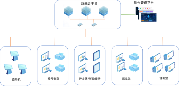 华网医疗全景云桌面解决方案,数据中心基于超融合平台建设,提供对象存储、NAS、网盘、虚拟主机应用,内外网数据同步;VDI/VOI/IDV三种技术架构交互融合,完美适配医生工作站、收费窗口、移动查房、后勤办公、远程诊疗、培训教室等所有医疗应用场景。