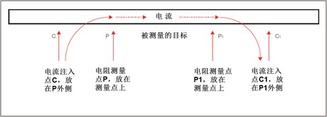 如下图所示,2个电流端子位于2个电压端子的外侧,这种方法能充分消除由测试导线的内阻所带来的误差。这种方法只需要较小的电流就能完成测量(10A以下),并得到精确、稳定、可验证的测量结果。分辨率能达到0.01μΩ,电阻测量范围是0.01μΩ - 200Ω。