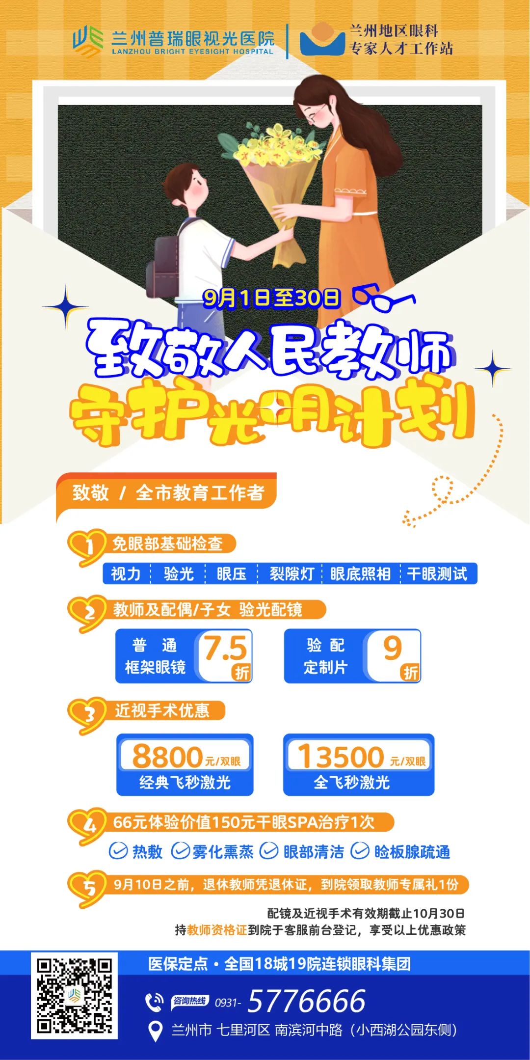 兰州普瑞眼视光医院真诚祝愿广大人民教师节日快乐