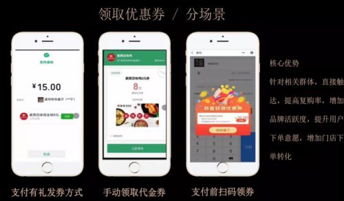 3、基于微信支付宝的大数据分析,向客户发放代金券、优惠券,促成转化。