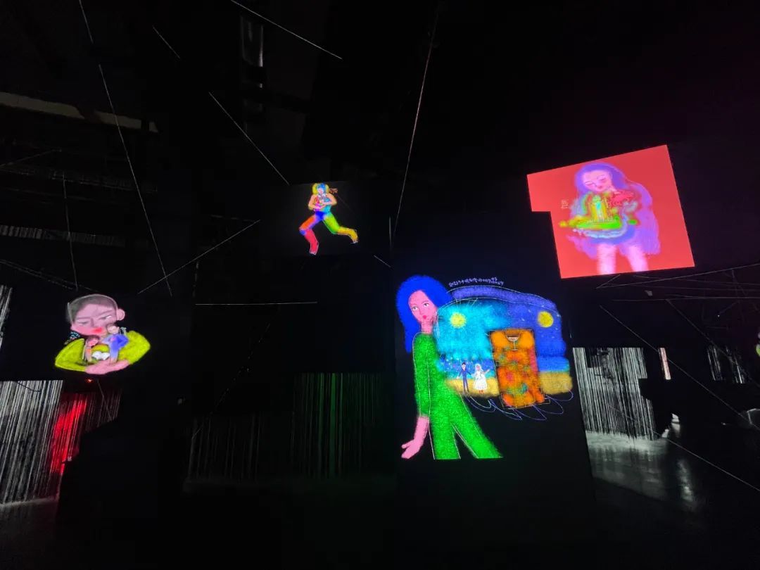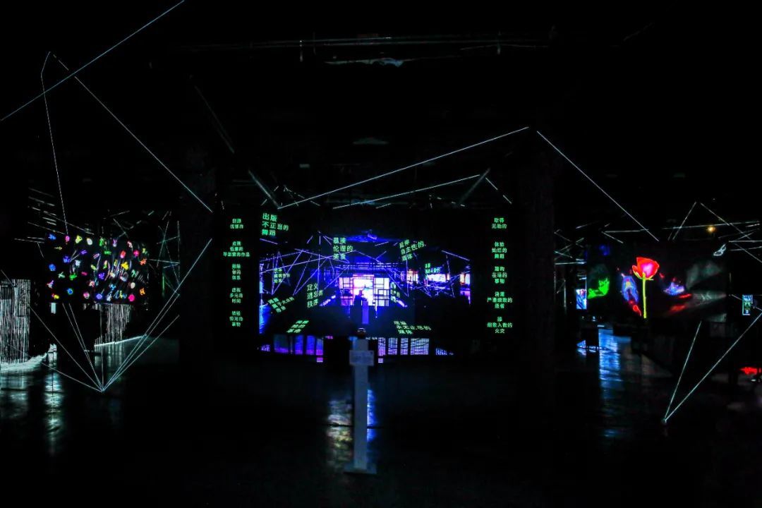 每件作品皆从不同角度探索了虚拟与现实的边界和连接,置身其中,感官互联。通过观众的肢体触发或与艺术家的对话,随即生成的拟像投射于屏幕之间。