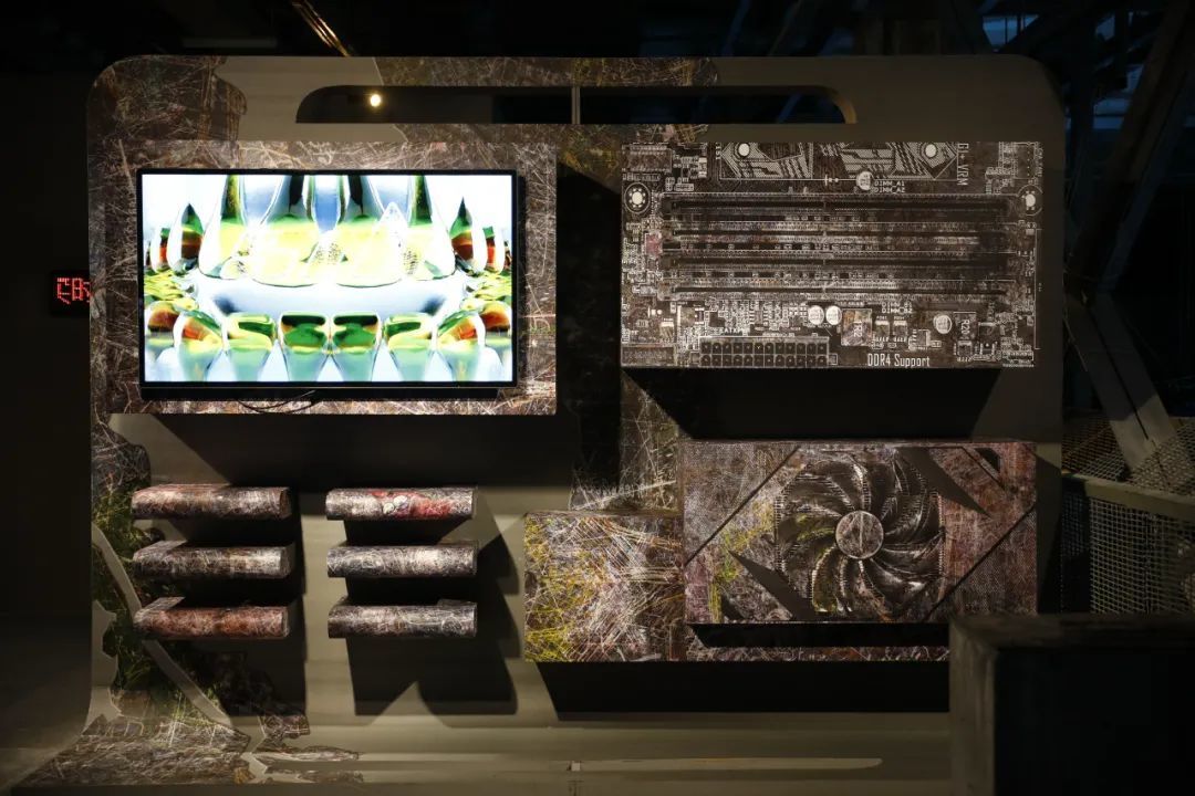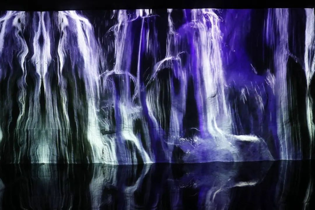 而面对有形的物质,曹舒怡通过机器学习将生物与矿石的数据重新赋予了生命,制造了流动的、参数化的新物质。刘佳玉则运用了3D投影技术并置了水流与山体的虚实,加之“镜屋”空间延伸,观众沉静于自然的无限之中。