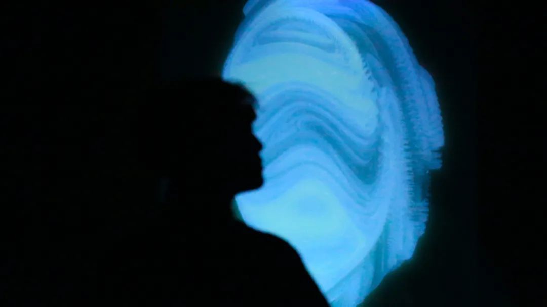 鲁大东和马明的现场合作及互动作品,实验了将书法的身体性与动态捕捉技术相结合。而另一种不可见的运动,或许来自于大脑,随着现代科学对人脑的破译,思想来自大脑这一叙事被广泛接受。张瀚铎制作了一件基于“脑机界面”技术的互动装置,观众独自走进幽暗的空间,与自身的电波信号所生成的影像与声音进行实时互动。