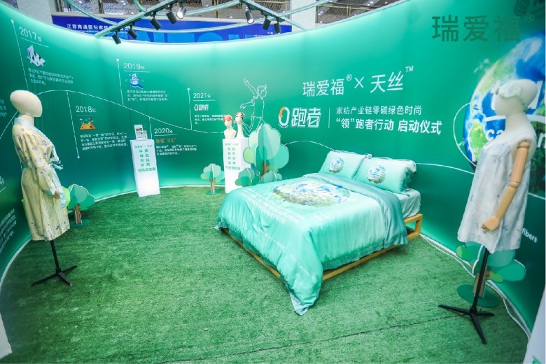 瑞爱福一直致力于家纺绿色高端面料的研发,与兰精集团保持长期深度的合作,已成为家纺市场天丝的“代言者”。此次携手推出零碳天丝™面料,旨在将低碳环保理念深度融入家纺产业供应链,做家纺产业可持续发展的有力推进者与践行者,引导消费者选择床品不仅可以营造时尚温馨居家氛围,带来健康安心睡眠环境,而且可以积极融入低碳生活方式,让每个人在日常生活中就能体验绿色践行环保。
