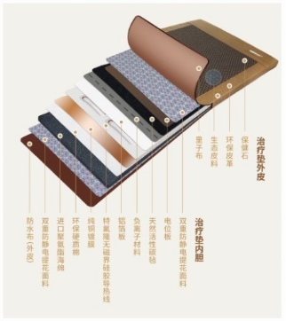 一张可喜安电位温热治疗仪(床垫),由11层组成。第一层便铺满发挥关键作用的保健石,在保健石的下面,治疗垫的内胆中,电位板、天然活性碳毡、负离子材料、特氟隆无磁界硅胶导热线等,则起到治疗垫发挥功效起到辅助作用,这些,共同成就了可喜安的产品内核。