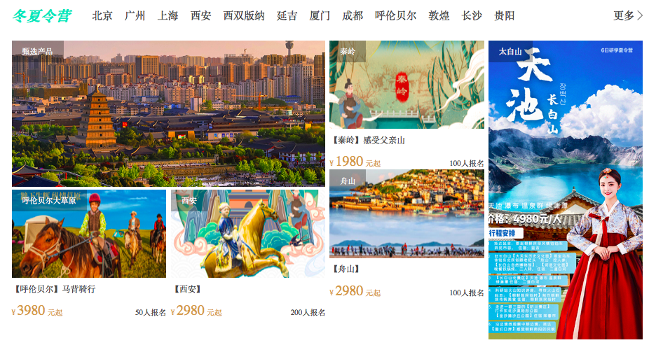 服务个性化和资源丰富化是京喜游平台的核心优势之一。京喜游产品线非常丰富,它拥有庞大的产品信息,可为客户提供多条国内冬夏令营线路,包含景区半日游、演出票、多日游学、夏冬令营、定制游学在内的目的地产品百余种,同时,该平台还提供定制出行、小团队DIY,个性化游学服务。另外,平台的在线咨询与网上预订功能,能够给用户提供高质量的咨询以及订退票服务,让消费者在选择产品时选得舒心,买得放心。