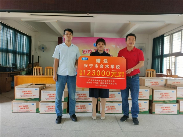 为大力营造尊师重教的浓厚氛围和良好风尚,促进教育事业科学和谐发展,近日,富莱欣(中国)国际集团有限公司携手广东紫芝林连锁医药药业有限公司在广东省梅州市兴宁市合水学校举办“尊师重教·心递感恩”物资捐赠仪式,为兴宁市合水学校的教职工和学生代表赠送一批价值12万的富莱欣牌蛋白粉和维生素D咀嚼片,并向全体教职员工致以节日的祝贺和诚挚的问候。广东紫芝林连锁医药药业有限公司总经理练茂红女士,兴宁市合水学校杨彬校长同志、部分教师学生代表以及富莱欣(中国)国际集团有限公司相关领导出席了本次活动。