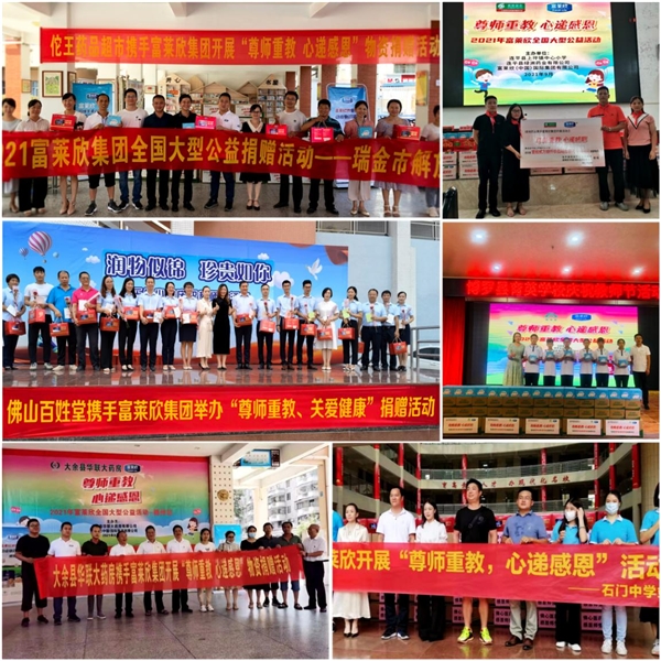 本次由富莱欣举办的“尊师重教·心递感恩”物资捐赠活动在广东汕头、河源、佛山、惠州、江西瑞金,赣州等各地陆续举办,其他全国各地的尊师重教捐赠活动也在火热进行中。