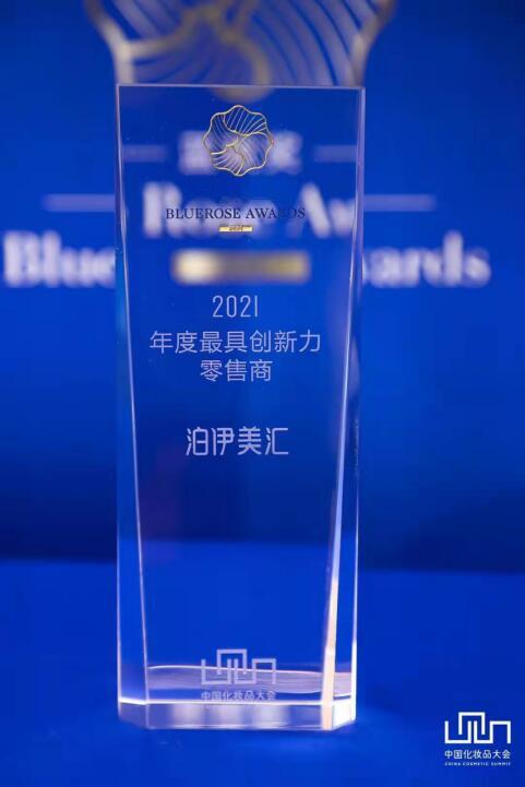 9月16日,在品观APP主办的2021(第十四届)中国化妆品大会上,泊伊美汇荣获“2021年度最具创新力零售商”奖项,这也是泊伊美汇第四次登上“蓝玫奖”领奖台。