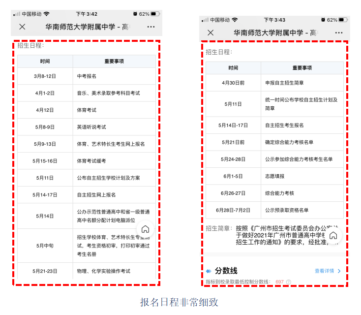 “学校库”内容细致到什么地步呢?举个例子,一所学校如果存在多种招生方式,比如自主招生,积分入学等,不需要反复查看不同的招生方式,即可浏览学校的报名日程和报名材料。