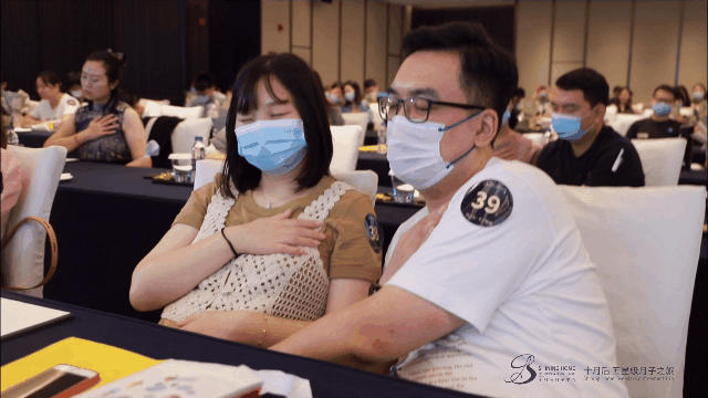 理论+方法,现场准爸爸准妈妈在聂巧乐老师指引下,感受与宝宝“心”的连接。
