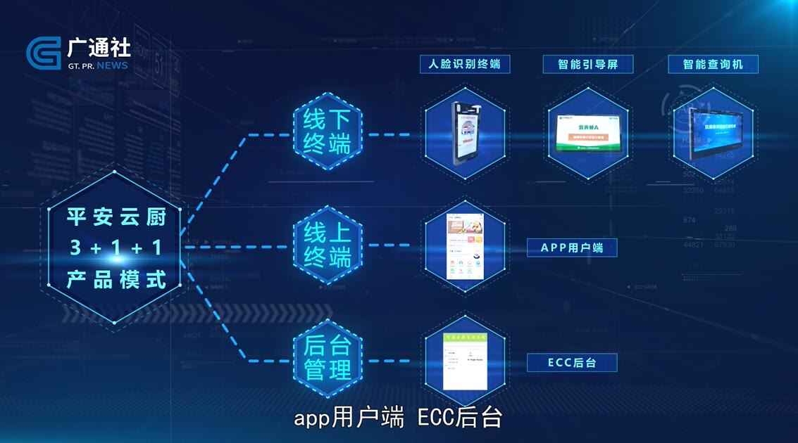 平安云厨自主研发的ECC系统,线下终端+线上终端+后台管理系统,包括人脸识别终端、智能引导屏、智能查询机、app用户端、ECC后台,家长通过app提前一周为孩子订餐,可进行线上支付,订单查询及明厨亮灶等监管信息,学校餐企通过ECC后台收到订单后,集中备餐,实现订单化生产,减少40%以上厨余垃圾,极大的提升了餐企的效率。每个窗口使用人脸识别终端刷脸取餐,学生取餐时间仅为2-5秒,智能引导屏显示窗口和菜品等信息,学生与打餐人员零交流零接触,随到随取,极大缩短取餐时间,避免排长队现象,就餐体验显著提升。智能查询机供在校学生进行订餐、查询等操作。