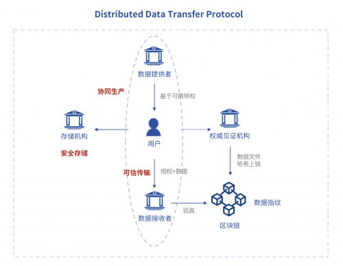 DDTP是一种新型的分布式数据传输协议,建立用户主动行使个人信息可携带权的模式,为实践个人信息可携带权、解放数据生产力提供中国可行落地路径建议。该协议基于区块链技术进行设计,通过区块链的全流程追溯、防篡改、传递信任等特性,叠加引进权威机构的参与,助力更安全、可信、易协作的个人信息携带应用。