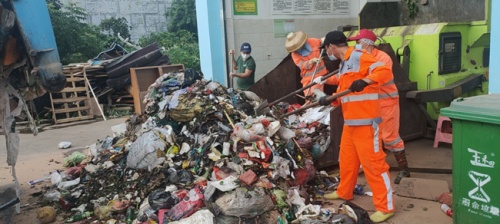 经过了解,得知这车垃圾正好是倒在永兴镇小型转运站垃圾转运箱里,于是4名环卫工人立即把垃圾转运箱体已被压缩的垃圾铲开,齐心协力的在垃圾中一点一点地翻找。