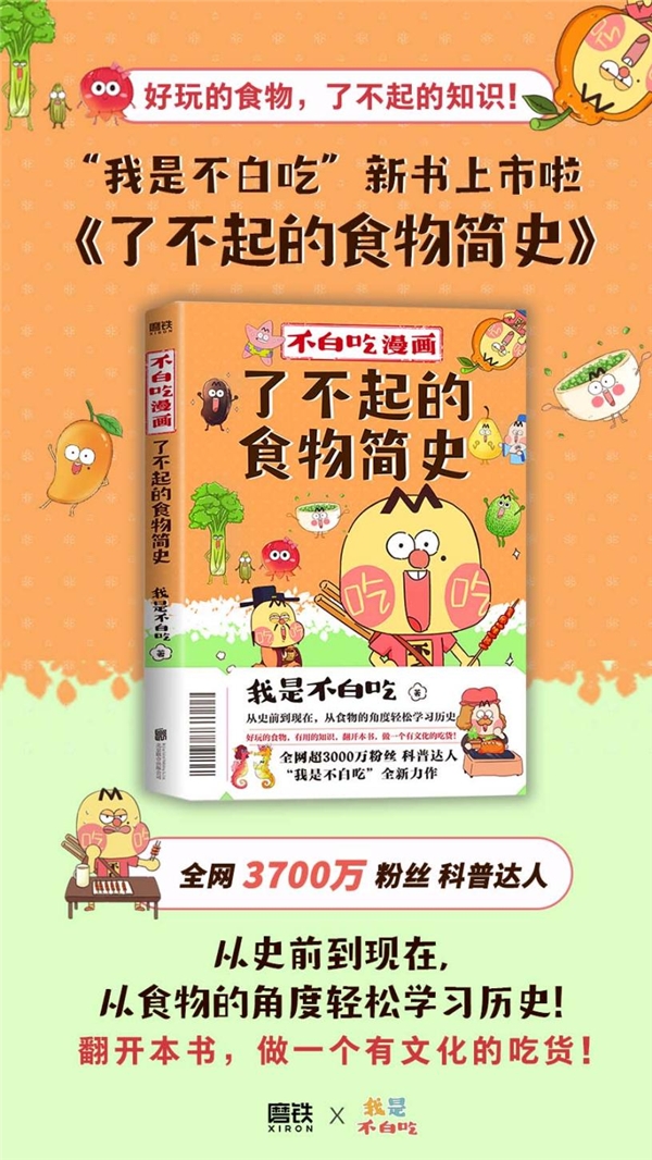 日前,由国内知名动画公司北京重力聿画影视文化有限公司及磨铁图书联合出品的漫画科普系列新作——《了不起的食物简史》已正式上线,这是继首部漫画科普书《不白吃漫画食物简史》之后,又一漫画书系列的力作。新书原汁原味地呈现了我是不白吃和美食之间的故事,新书老少皆宜,用轻松幽默的漫画形式,详解食物背后的起源和轶事,贯穿历史、人文、生物学、植物学等领域知识,以生动有趣的画面,严谨易懂的语言,帮助读者快速了解文化内涵和历史渊源,堪称美食界的百科全书。