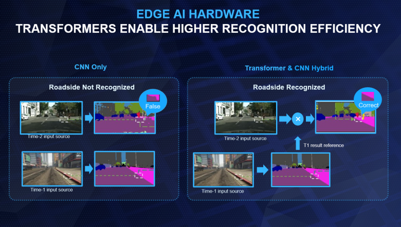 KL530是市场上率先商用支持 Vision Transformer AI模型的 AI 芯片,它有别于传统的卷积神经网络 (CNN) 模型。对于连续帧,Transformer 的准确度比 CNN 高 出30%,并且远远超过 L2(自动驾驶)需求,对交通网络中的移动对象只能通过连续帧来实行准确的推断,Transformer可以从整体上来进行推断,而不是像 CNN 那样仅基于关键特征点(如眼睛、耳朵、嘴巴)进行推断,从而通过精准的危险检测提高自动驾驶和应用的安全性。