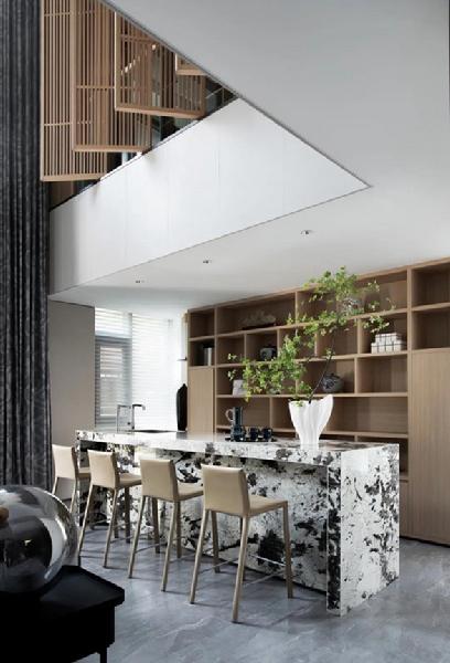 在万科·白沙润园府邸一案中,臻品空间设计基于生活细节推演出整体空间设计,构建使用者与空间的互动和内在联系。面对五层体量的独栋别墅空间,其最大的挑战在于如何为地下两层空间带去对流通风与充足采光。最终,郑俊华将两个下沉式庭院打通,营造出一所“会呼吸的房子”,形成一个风与光自由穿梭的休闲场域。