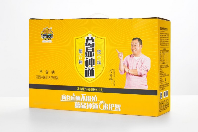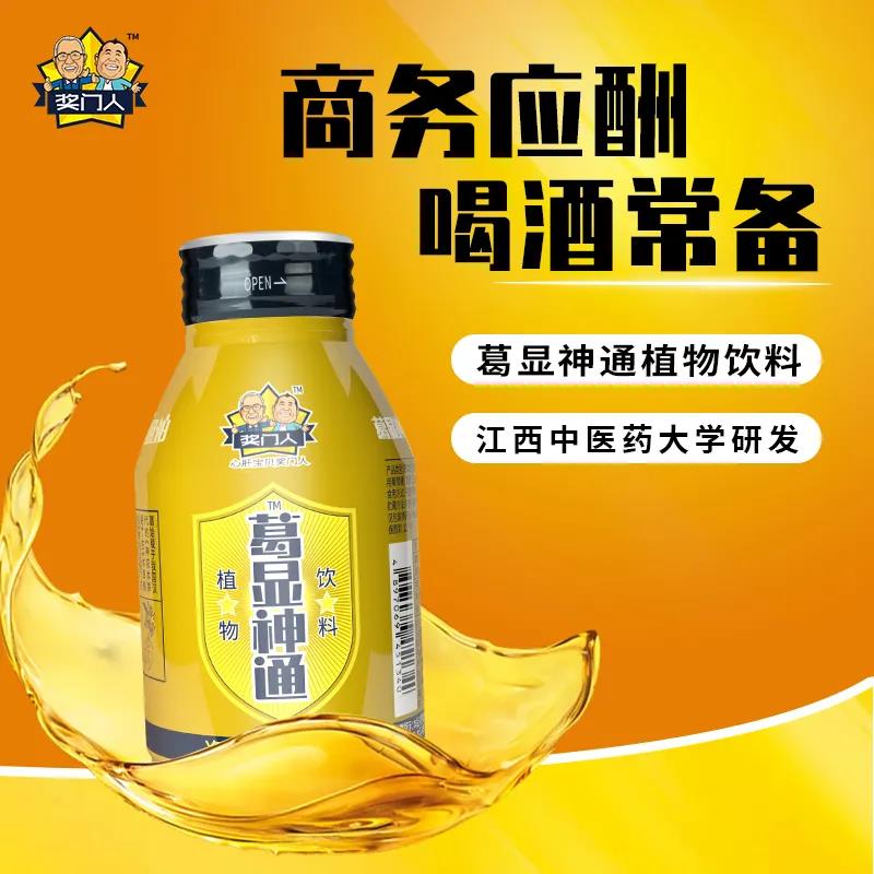 葛显神通植物饮料以葛根为主要原料,精选多种药食同源食材秘制而成,具有有效缓解酒后头痛、头晕、呕吐、睡眠不好、解酒护肝,醒养合一等功效。在独创的葛根多糖提取专利技术加持下,添加药食同源食材茯苓、葛根、佛手、玉米须、陈皮、枳椇子、砂仁等,植物提取,充分发挥着药食同源产品的护肝功效。在每瓶葛显神通植物饮料中,国家专利产品葛根多糖这一有效成分含量就高达0.5g,无添加防腐剂、香精、色素,不含钠,不含脂肪,是真正健康又效果明显的解酒产品,经冷藏后,风味爽冽,口感更佳,一经上市便受到广大消费者的追捧与口碑认可。