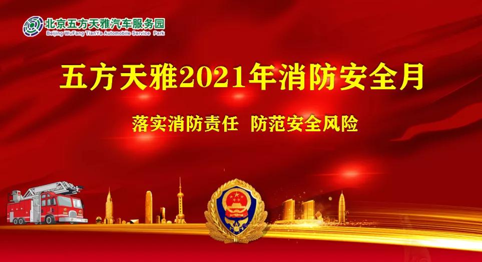 今年的“11.9”是北京市第三十一届“119”消防宣传月。为做好消防安全工作,迎接2021年度119消防宣传日,五方天雅汽车服务园以“落实消防责任, 防范安全风险”为主题,提高园区商家及从业人员消防安全意识和应对突发事件的反应能力,增强自救逃生能力,确保园区人员生命财产安全,于11月8日下午在五方天雅汽车服务园线上开启消防安全月活动。