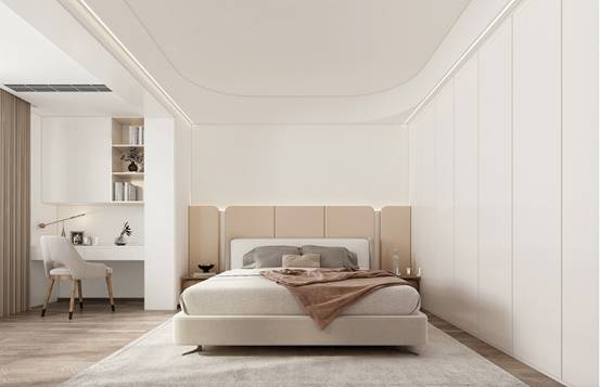 顶部留空,那顶部这部分空间往往就会成为灰尘的聚集地,这相当于给卧室增加了一个"污染源",打扫起来也不方便,所以,一般鸿扬家居会推荐业主衣柜一定要做到顶,不仅解决了卫生问题,还多了收纳空间,可以放置一些不常用的东西。