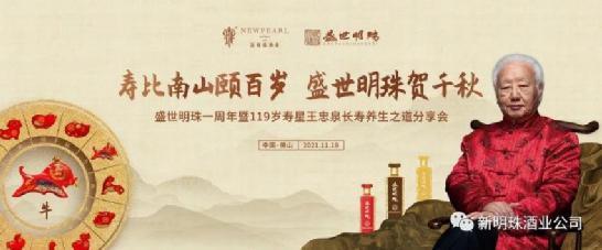 天增岁月人增寿,寿比南山不老松,酱香美酒夜光杯,与君畅饮明珠情。2021年11月19日,“寿比南山颐百岁•盛世明珠贺千秋”—盛世明珠一周年暨119岁寿星王忠泉长寿养生之道分享会完美落幕,现场成功首发十二生肖产品及盛世明珠“盛”系列新品。明珠耀禅城,广东新明珠酒业蓄力前行,运用各种资源,加速产品打造,加快市场布局,助力公司酱酒项目稳健发展。