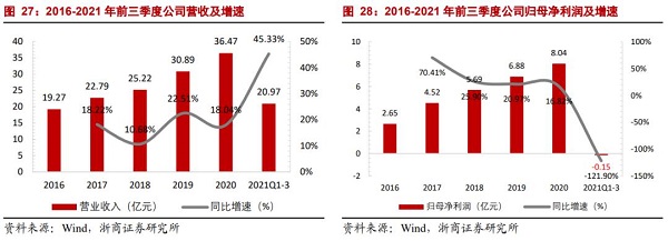 2020年,公司营收36.47亿元,同比增长18.04%,2015-2020年CAGR为18.91%,收入持续稳定增长。2021年前三季度,营收20.97亿元,同比增长45.33%,增速上行。