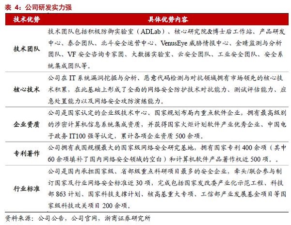 (2)公司研发人员数量达2072人,2016-2020年间持续增长,研发人员数量占总员工人数比达38.51%。高研发投入,为公司在新兴安全领域的持续发力奠定良好基础。
