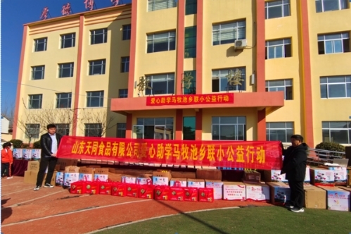 11月24日,天同食品有限公司组织员工到山区小学开展爱心帮扶送温暖活动,为马牧池乡董家庄联小的学生们送去了公司精心准备的罐头等食品,看到天同食品一行爱心工作人员的到来,学生们异常高兴,少先队员齐熙悦代表全体同学对天同食品的爱心帮扶活动表示了由衷的感谢,表达了一定要好好学习的决心。