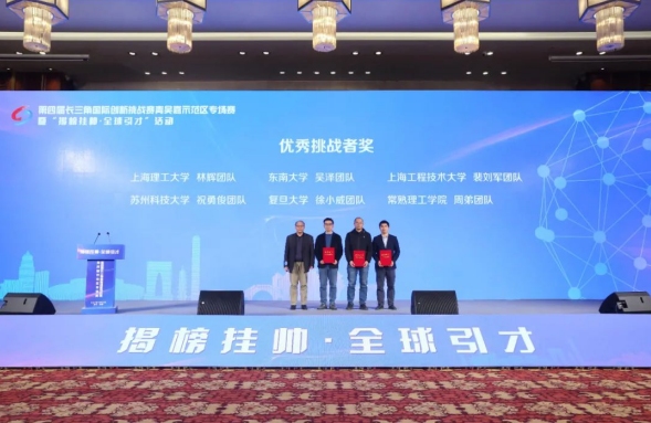 活动上,苏州明志科技股份有限公司、江苏凯伦建材股份有限公司作为优秀技术需求企业代表吴江区参加了现场赛,2家企业分别通过线上线下的形式介绍了在设备升级改造和光伏领域新产品、新技术研发的需求。来自上海交通大学、复旦大学、东南大学、上海应用技术大学的专家团队围绕2家企业技术难题,展开挑战比拼,最终来自上海交通大学的施光林教授团队和上海应用技术大学的林琳教授团获得优胜挑战者奖;来自东南大学的吴泽教授团队和复旦大学徐小威老师团队获得了优秀挑战者奖。同时现场还为十家吴江企业颁发了优秀技术需求奖。