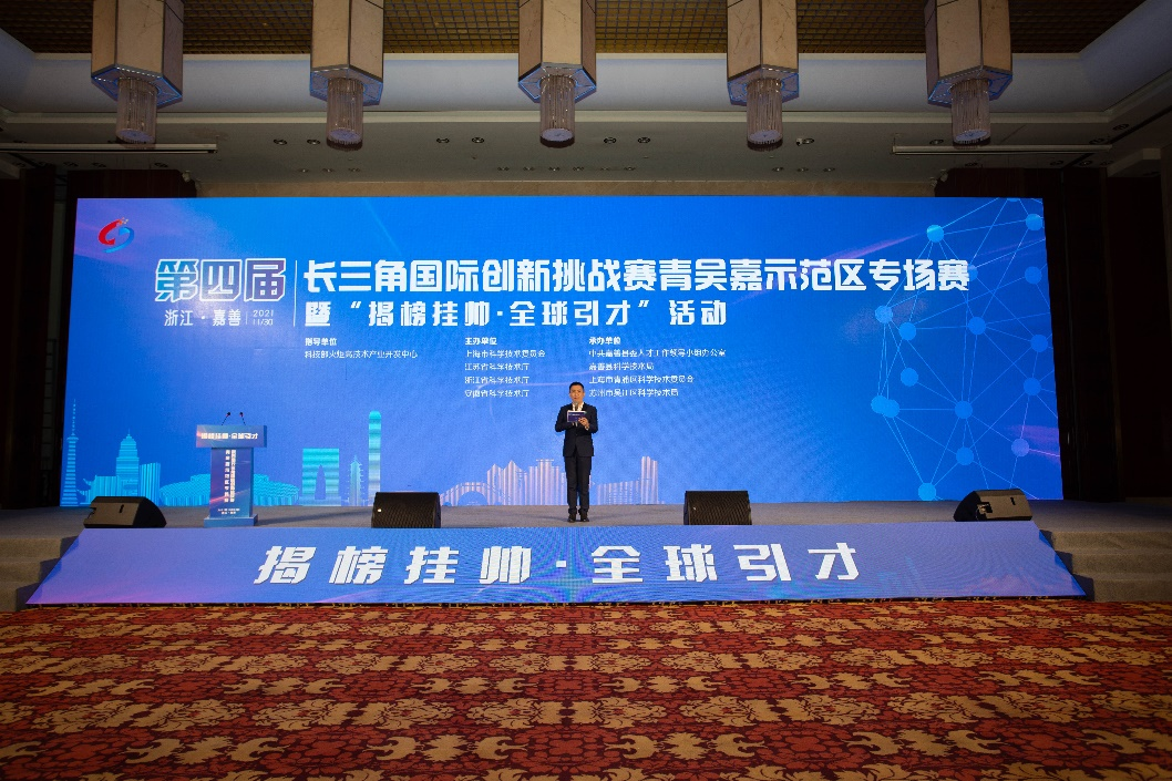 2021年11月30日,第四届长三角国际创新挑战赛青吴嘉示范区专场赛暨“揭榜挂帅·全球引才”活动在嘉善成功举办。本次挑战赛以科技部火炬高新技术产业研发中心为指导单位,由上海市科委、浙江省科技厅、江苏省科技厅、安徽省科技厅共同主办,青吴嘉三地科技部门联合承办。