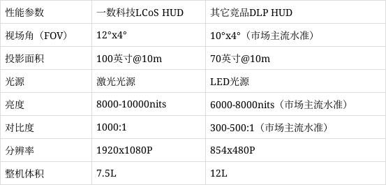一数科技研发的LCoS HUD对比竞品DLP HUD具有明显优势