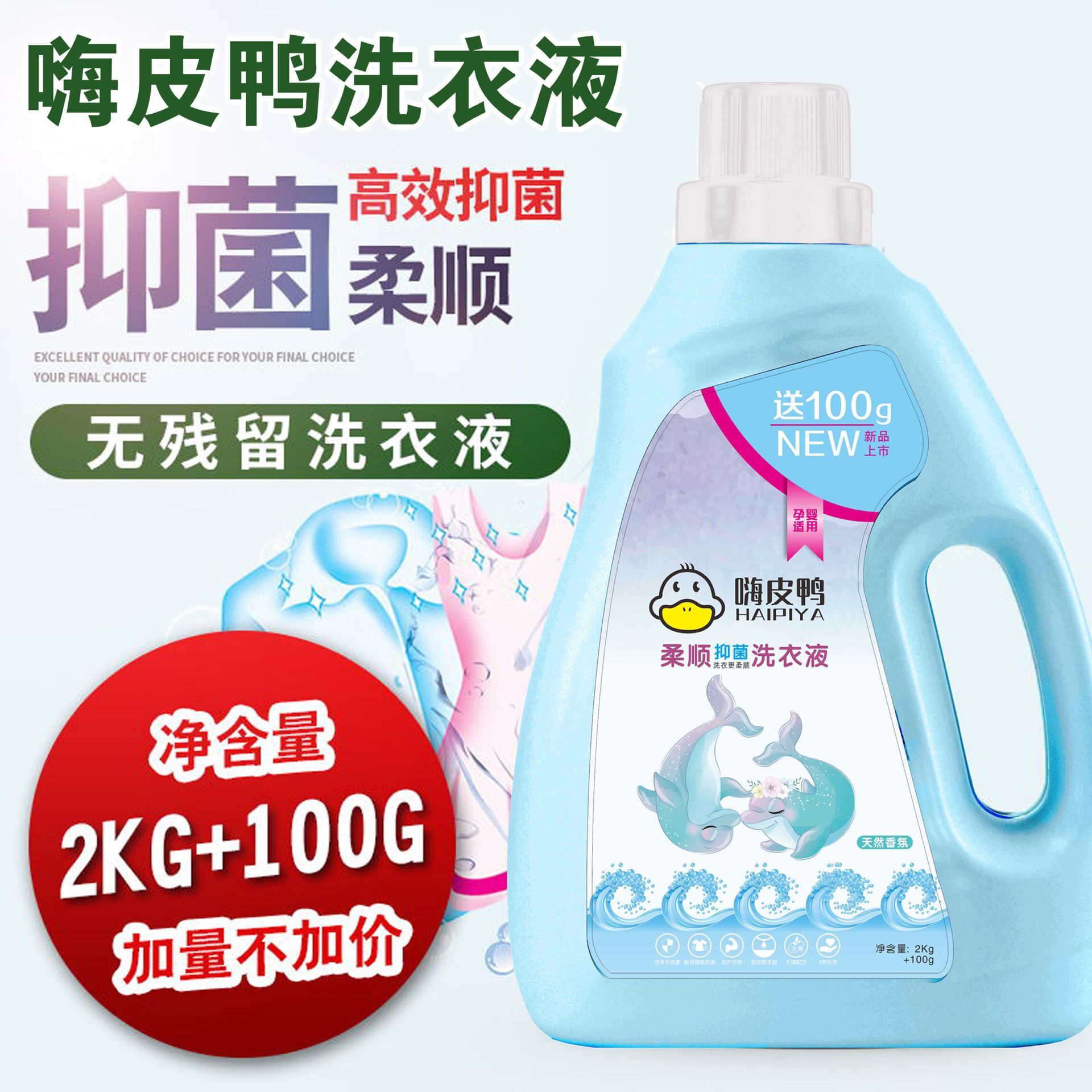 嗨皮鸭洗衣液不仅做到了衣物的高效清洁,在除菌、抑菌上,也是认认真真地把活干好。在把小宝宝的衣服洗干净这件简单的事情上,没有什么品牌比嗨皮鸭洗衣液做得更极致了。嗨皮鸭洗衣液采用浓缩型配方,活性物大于21%,可以轻松去污。此外,嗨皮鸭洗衣液采用5种天然提取物的复合成分作为抗菌配方,抑菌功效达到99%以上。嗨皮鸭洗衣液呵护宝宝肌肤不刺激,又守护宝宝肌肤健康不受细菌滋扰。